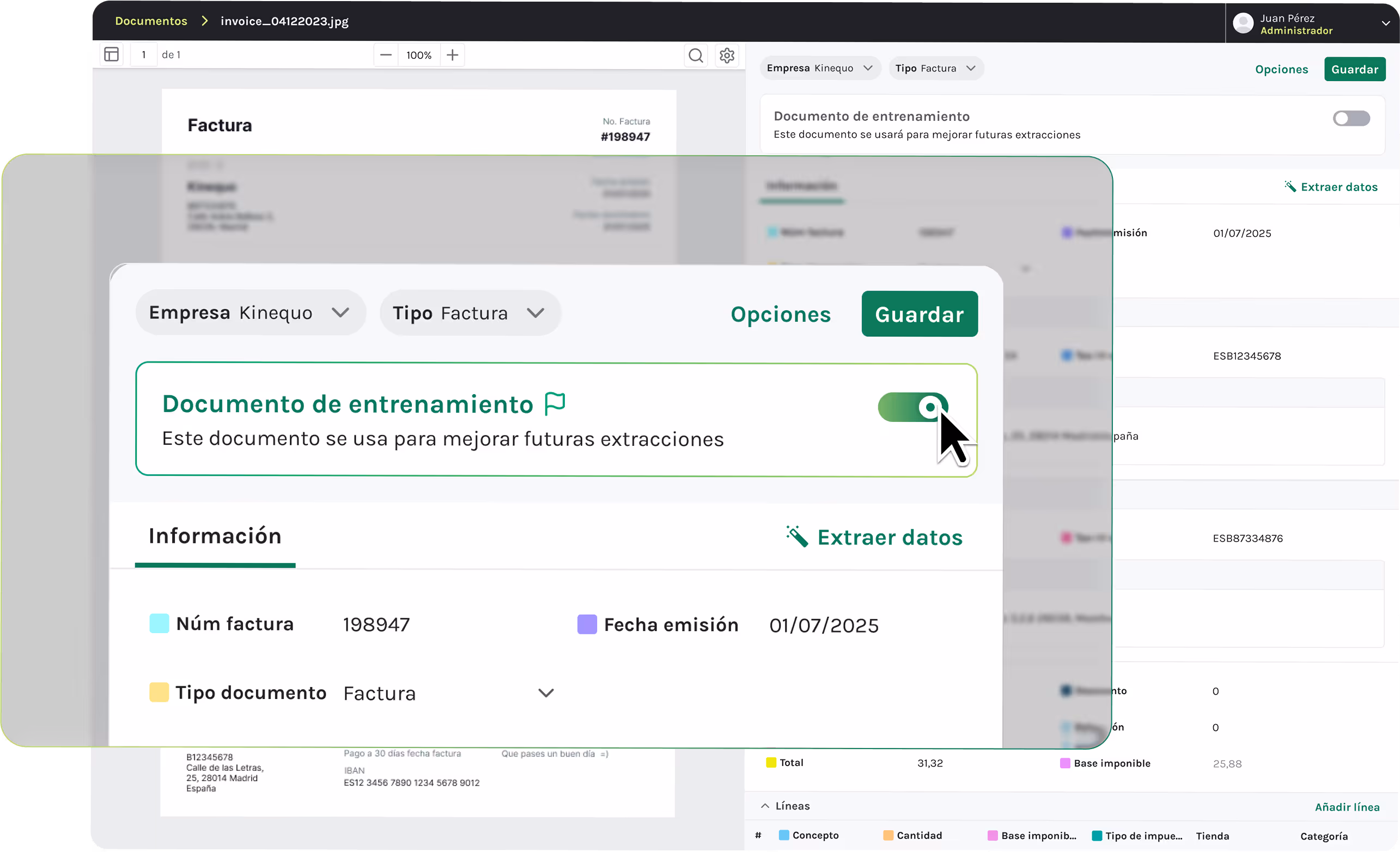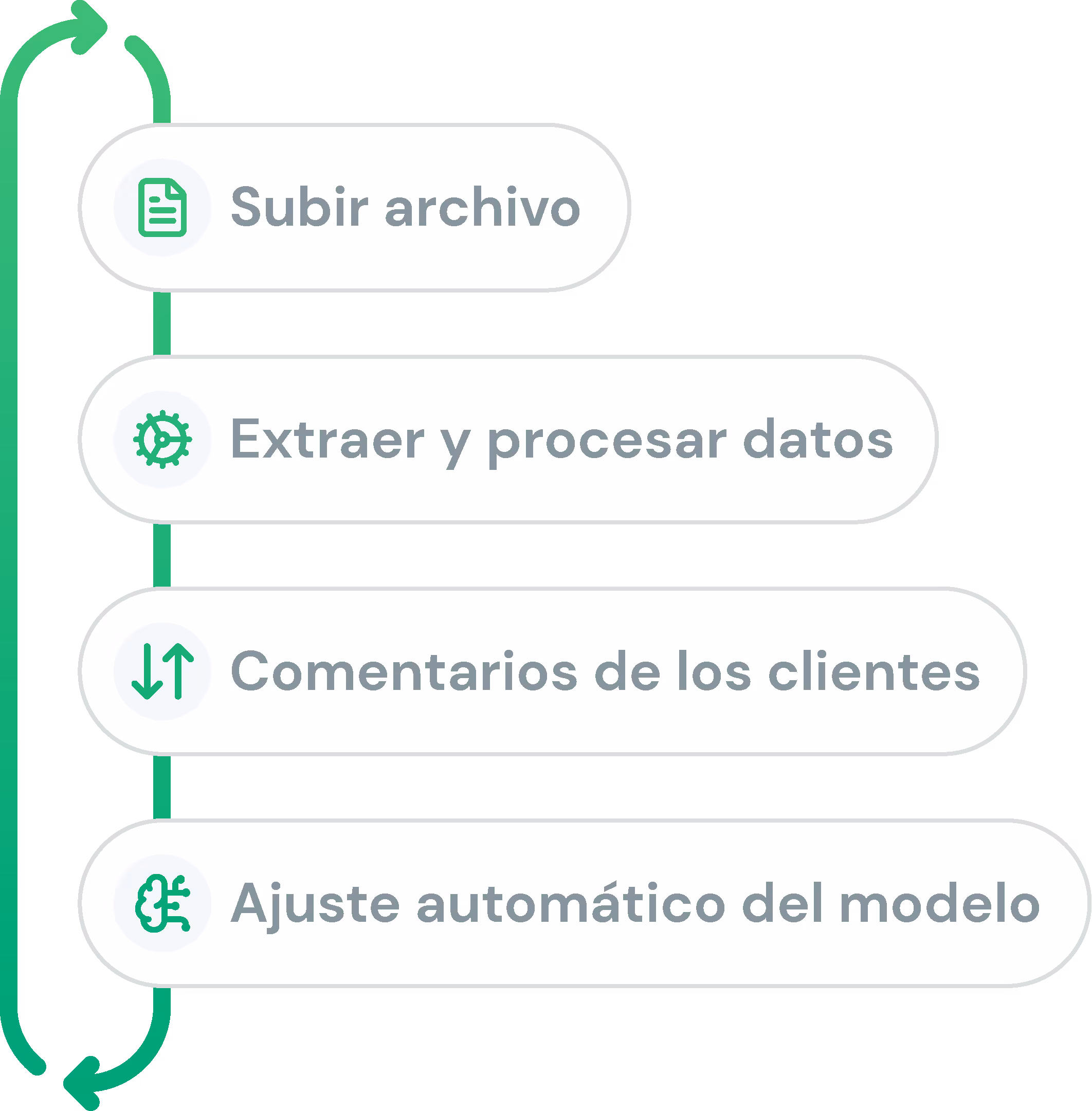 Invofox mejora la precisión de sus modelos mediante ciclos de aprendizaje en tiempo real, asegurando una extracción de datos cada vez más inteligente, rápida y fiable.